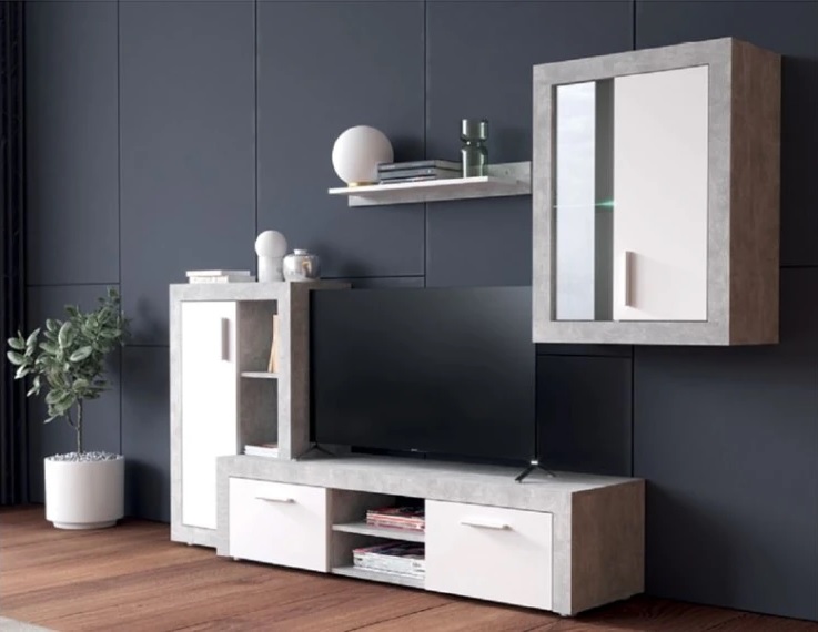Стенка изготовлена из высококачественного ламинированного ДСП, которое отличается стойкостью к царапинам, влаге и ежедневным нагрузкам. Натуральное сочетание бетон с акцентами нимфеи альба создаёт стильный современный образ.
