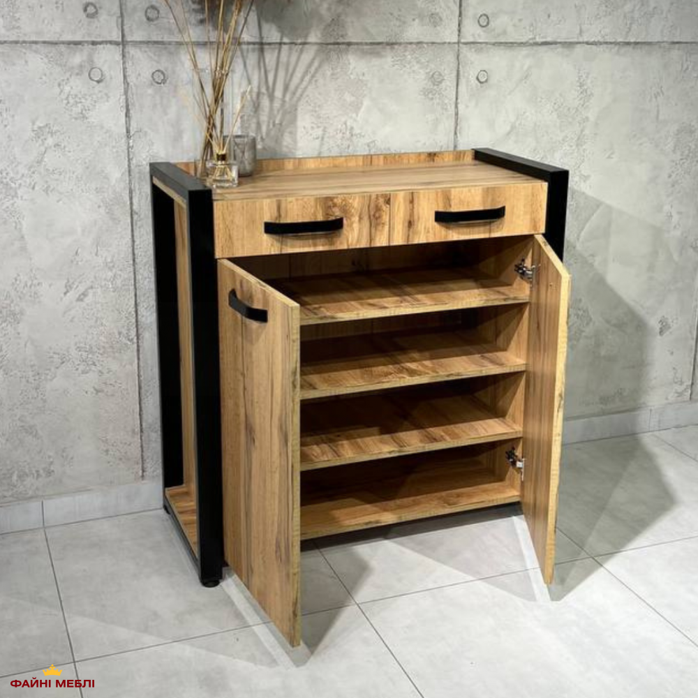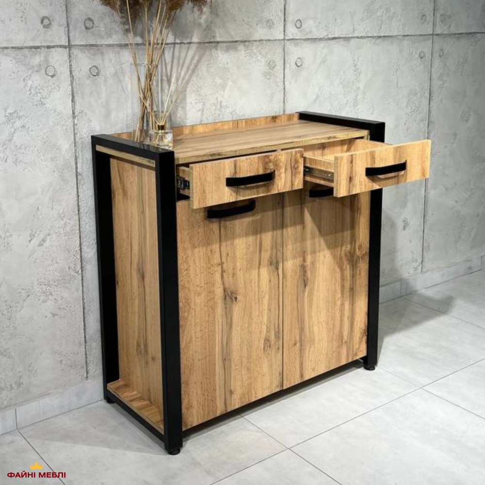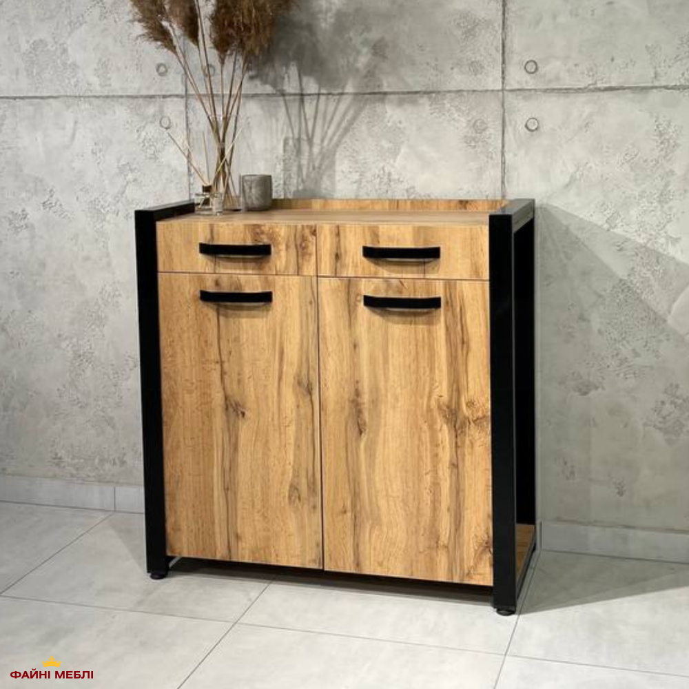 Тумба LOFT 2ш2д Дуб Сонома / Чёрный мат MebliRoMax