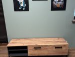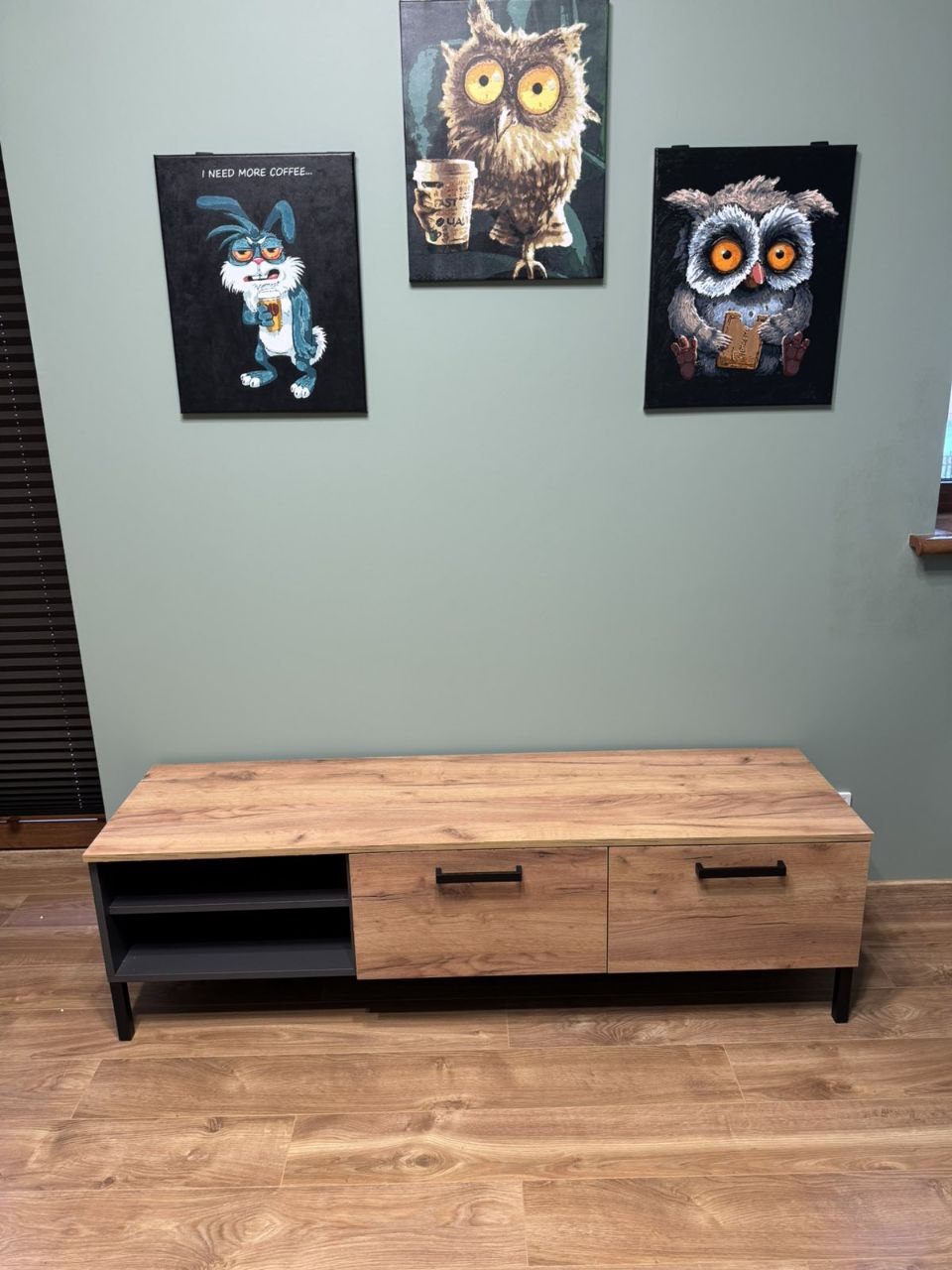 Тумба зручна та акуратно зроблена. Міцна конструкція, достатньо місця для техніки й дрібниць. Виглядає стильно та добре вписалась в інтер’єр, покупкою задоволені.