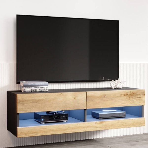 Тумба под ТВ Виго RTV140 выполнена с корпусом из ЛДСП и фасадами из МДФ, что обеспечивает прочность и современный вид. Она представлена в сочетании цветов Дуб Вотан/Чёрный, которое придаёт интерьеру тепло и элегантный контраст. Внутреннее пространство разделено на две просторные ниши: верхняя закрывается подъемной панелью, а нижняя остаётся закрытой для удобного хранения вещей. По желанию покупателя ниши могут комплектоваться светодиодной подсветкой для стильного эффекта. Тумба поставляется в разобранном виде и комплектуется инструкцией и полным набором фурнитуры для самостоятельной сборки. Продуманная конструкция и качественные материалы делают Виго RTV140 функциональным и стильным дополнением вашей гостиной.