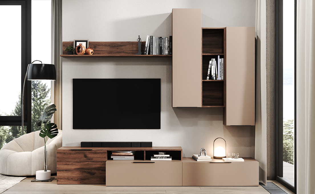Универсальность. Вы получите стенку, которая одинаково хорошо подойдёт и для просторной, и для компактной комнаты, помогая максимально эффективно использовать площадь.