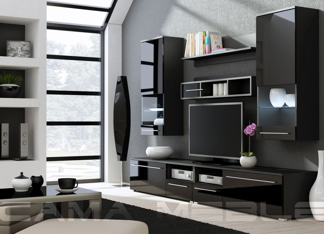 Стенка изготовлена из высококачественного ламинированного ДСП, которое отличается стойкостью к царапинам, влаге и ежедневным нагрузкам. Натуральное сочетание оттенка черный с акцентами черного глянцю создаёт стильный современный образ.