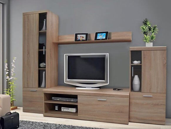 Комплект состоит из ТВ-тумбы, закрытых и открытых отделений, что позволяет максимально функционально использовать пространство возле телевизора, сохраняя эту зону аккуратной и визуально лёгкой.