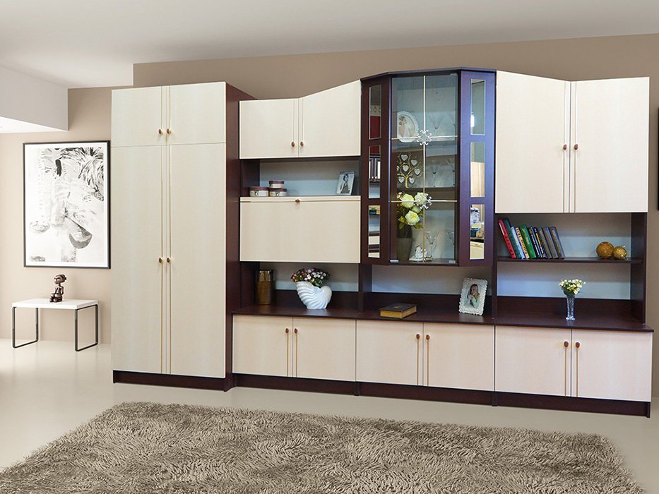 Универсальность. Вы получите стенку, которая одинаково хорошо подойдёт и для просторной, и для компактной комнаты, помогая максимально эффективно использовать площадь.