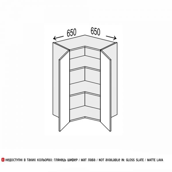 Секція верхня КутВ 90° 650х650/900 2дв Глорі