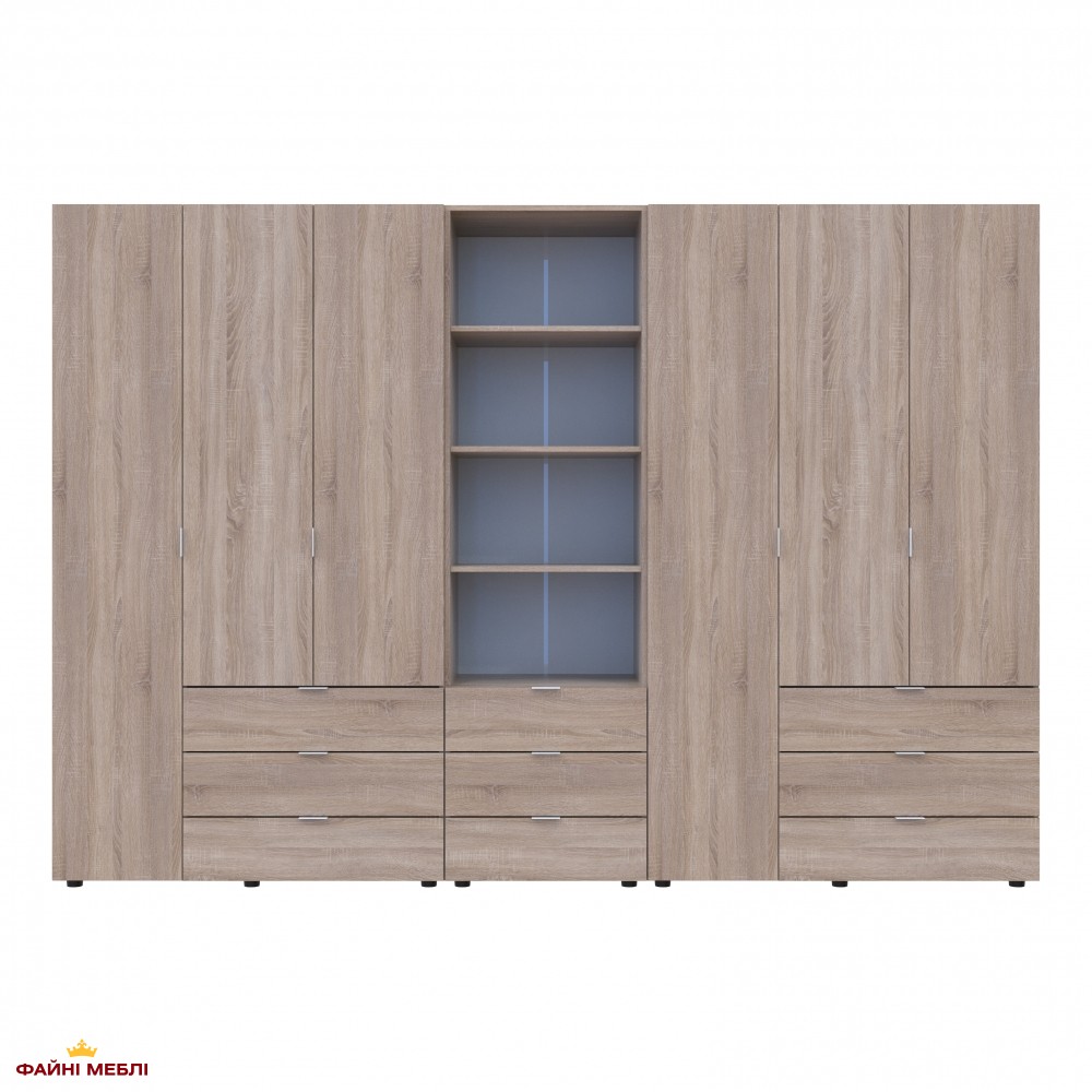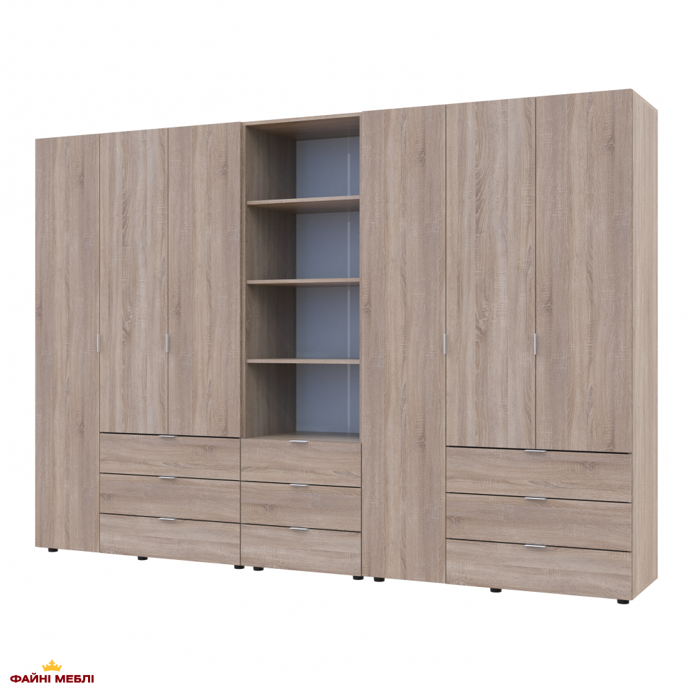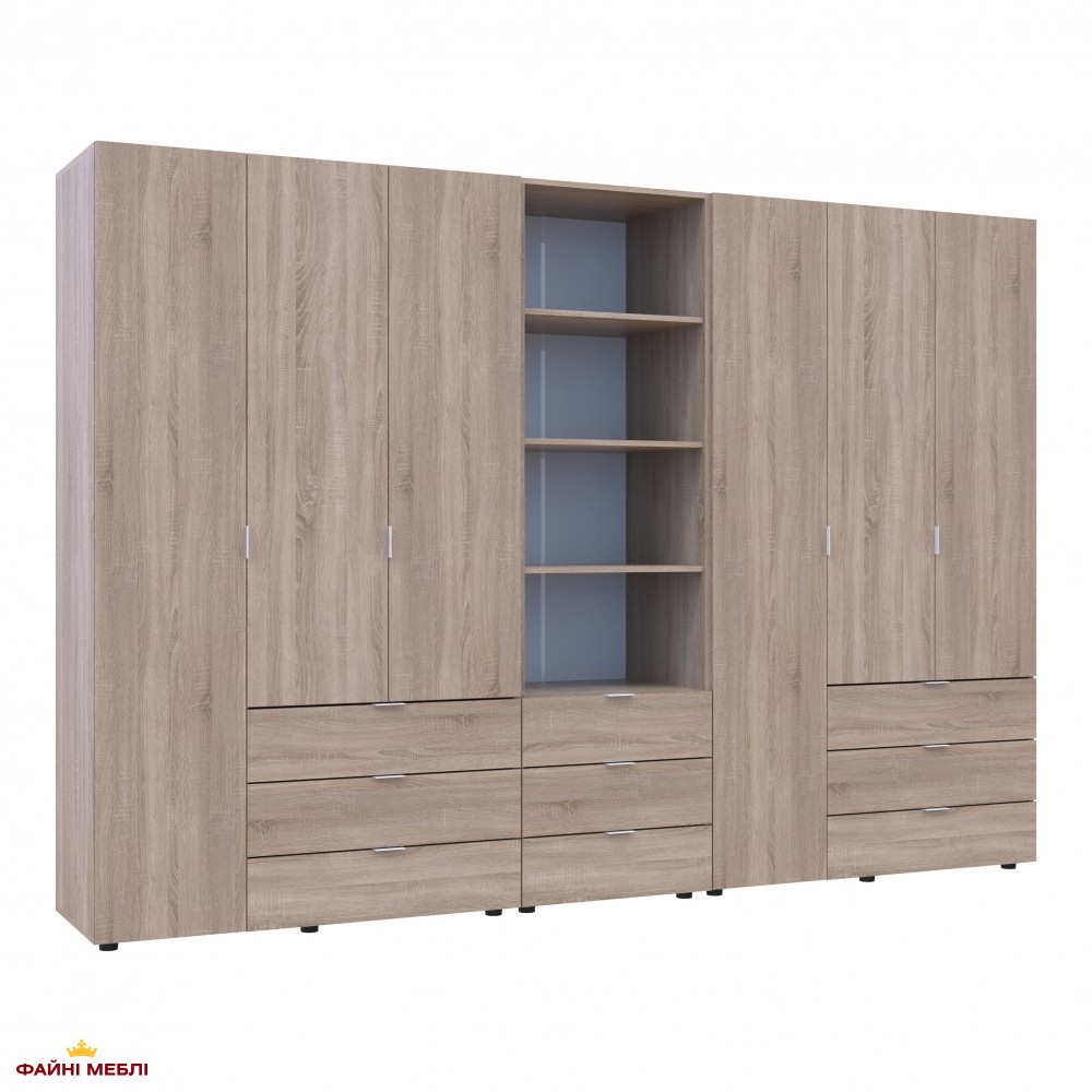 Шафа для одягу Дорос Гелар дуб сонома 6 дверна з пеналом 292,4 см
