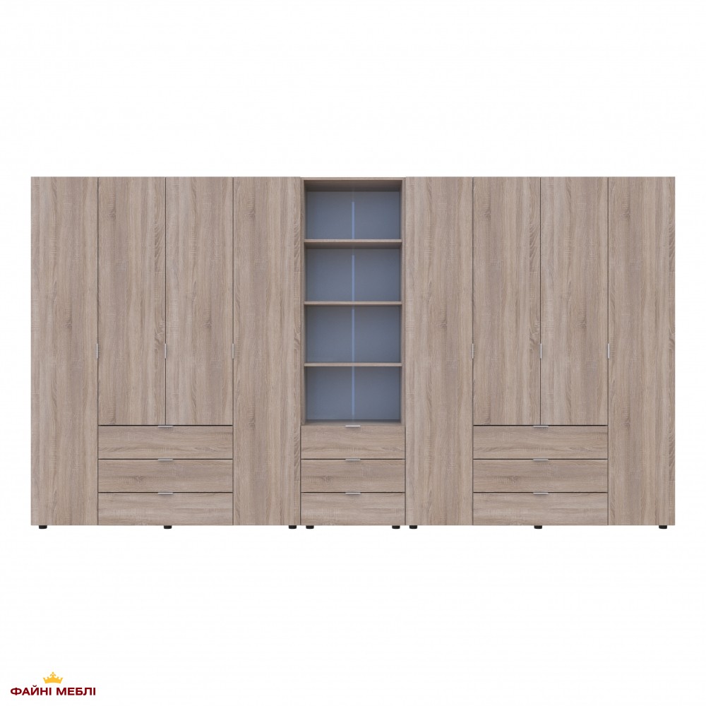 Шафа для одягу Дорос Гелар дуб сонома 8 дверна з пеналом 370 см