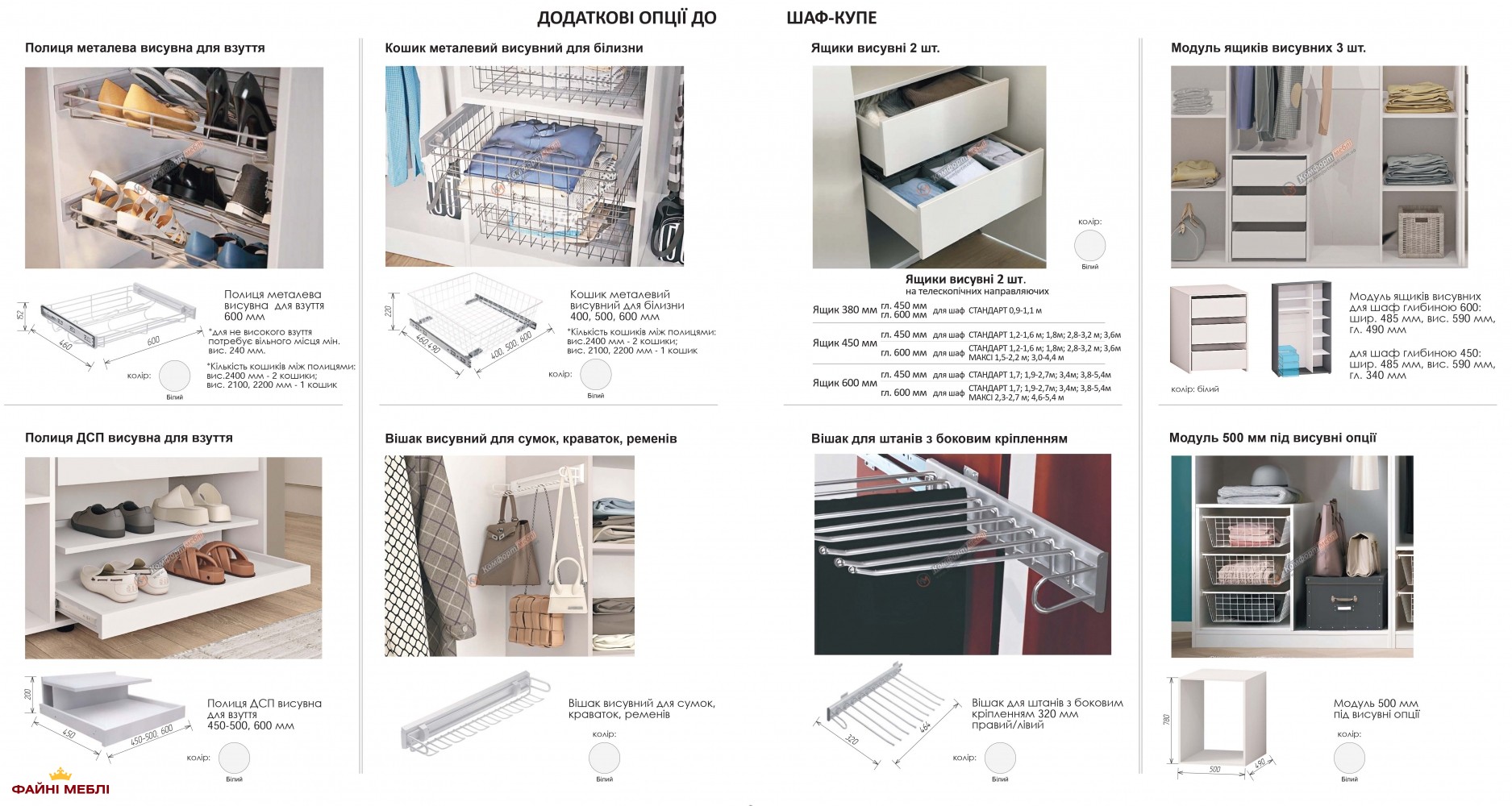 - Задня стінка шафи: ХДФ білого кольору