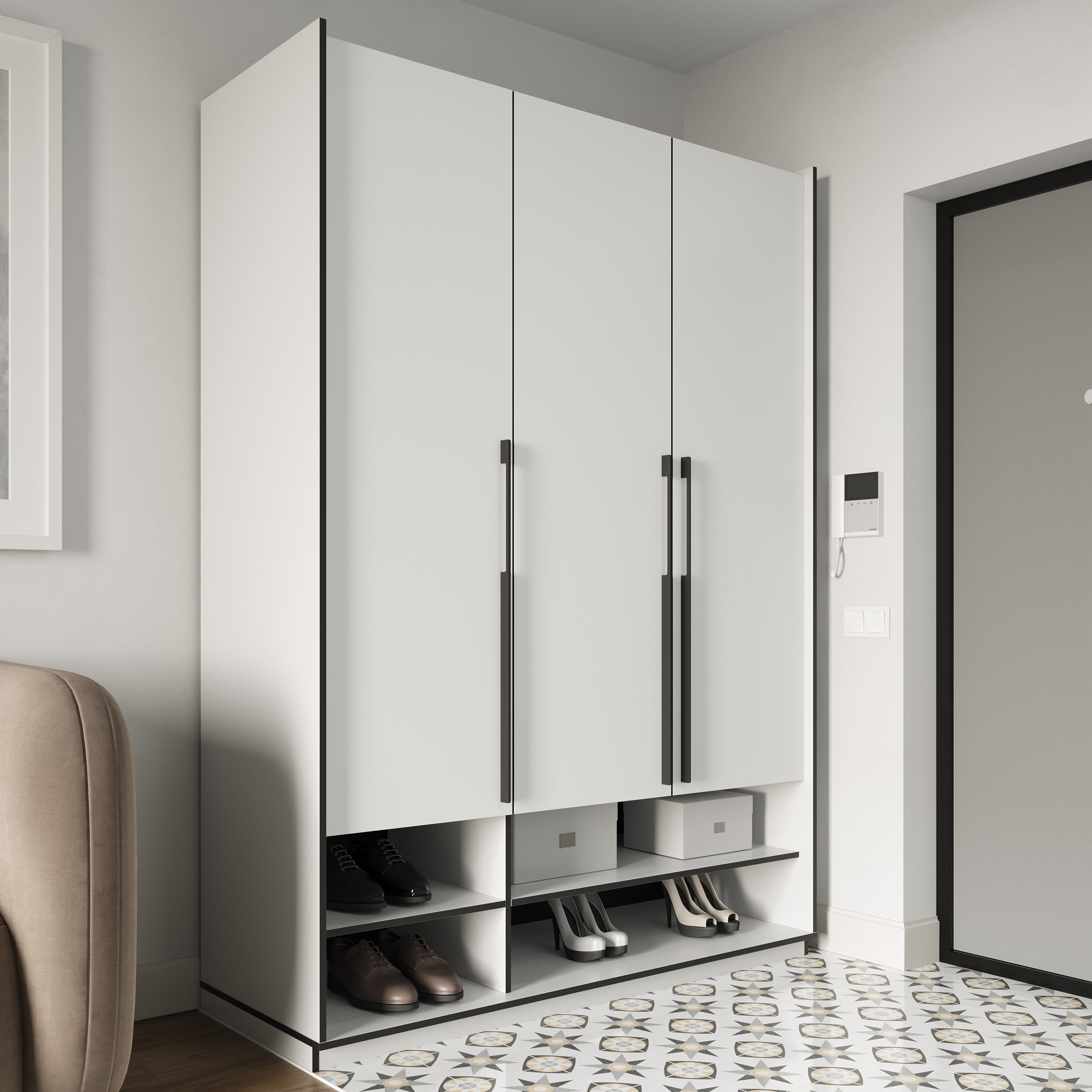 Шафа Морелі R-0006 Рамо 3 дверна білий зі штангою та полицями 150 см