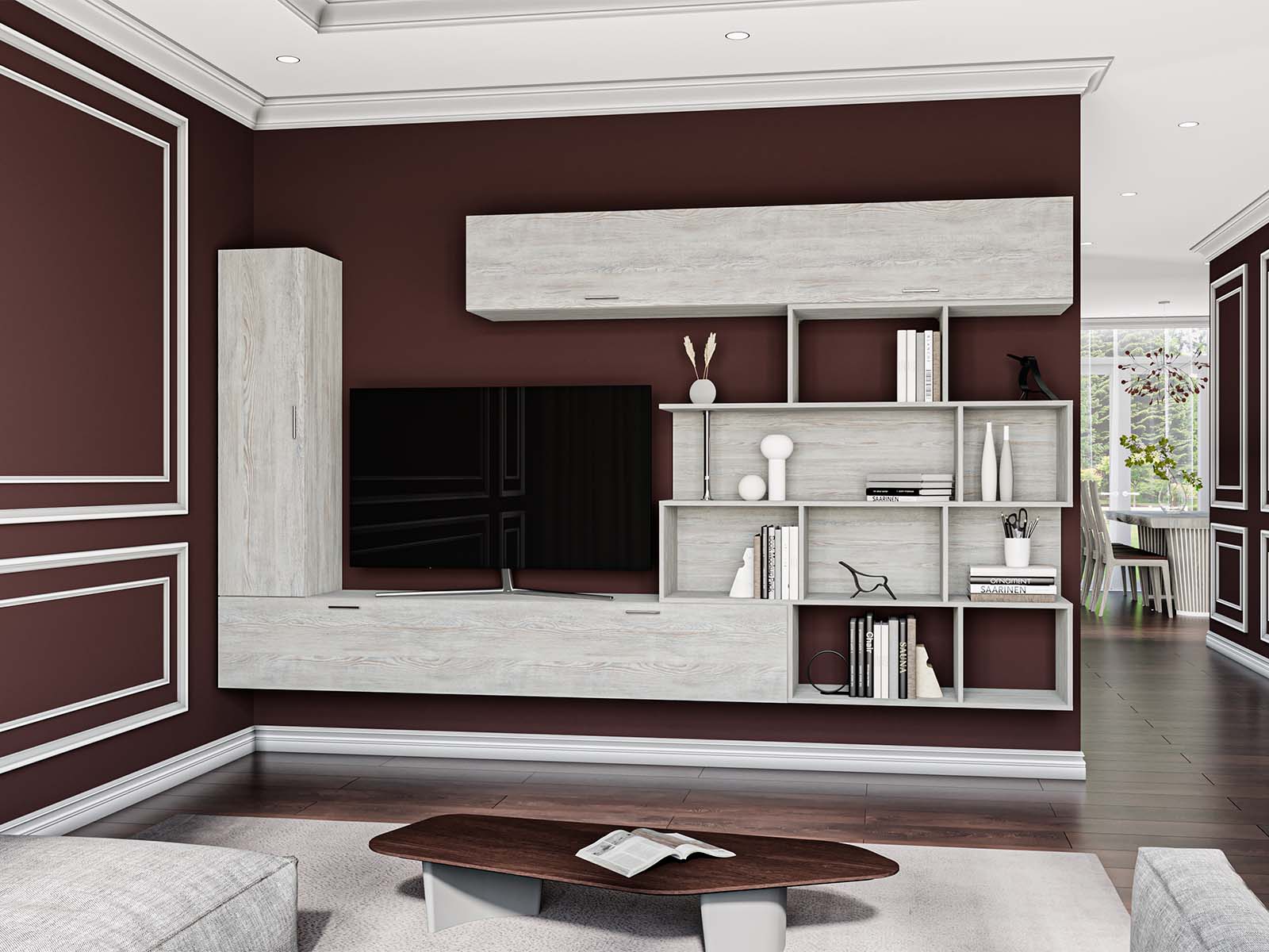 Універсальність. Ви отримаєте стінку, яка ідеально пасуватиме як до просторої вітальні, так і до компактної кімнати, допомагаючи максимально раціонально використати площу.
