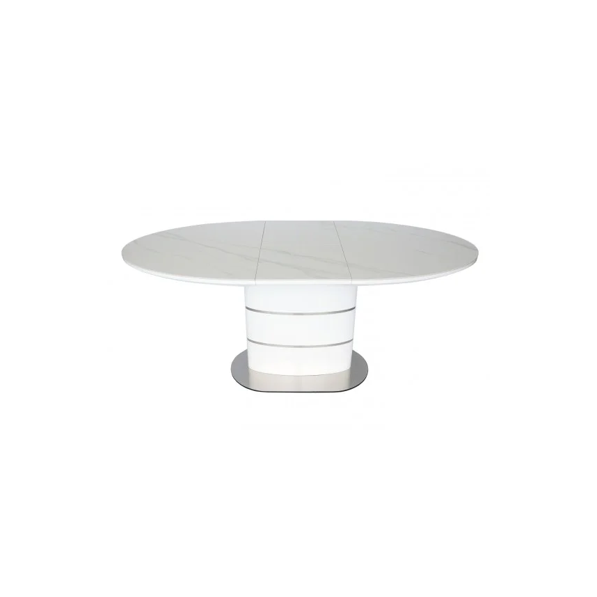 Стіл обідній SANREMO CERAMIC Інтарсіо білий ефект мармуру/білий глянець Розкладний 160/200 см