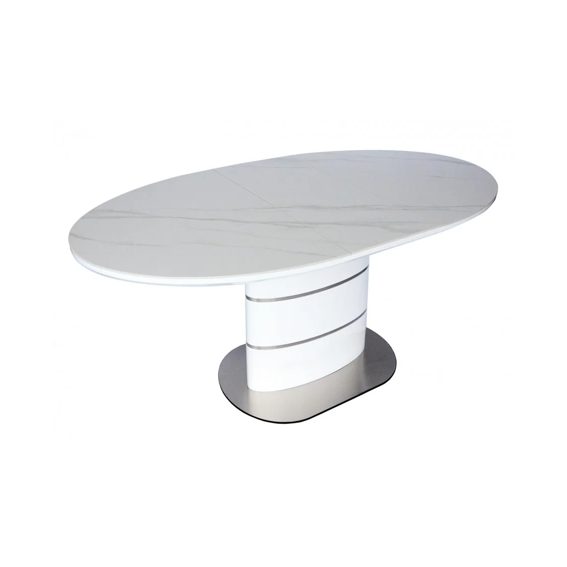 Стіл обідній SANREMO CERAMIC Інтарсіо білий ефект мармуру/білий глянець Розкладний 140/180 см