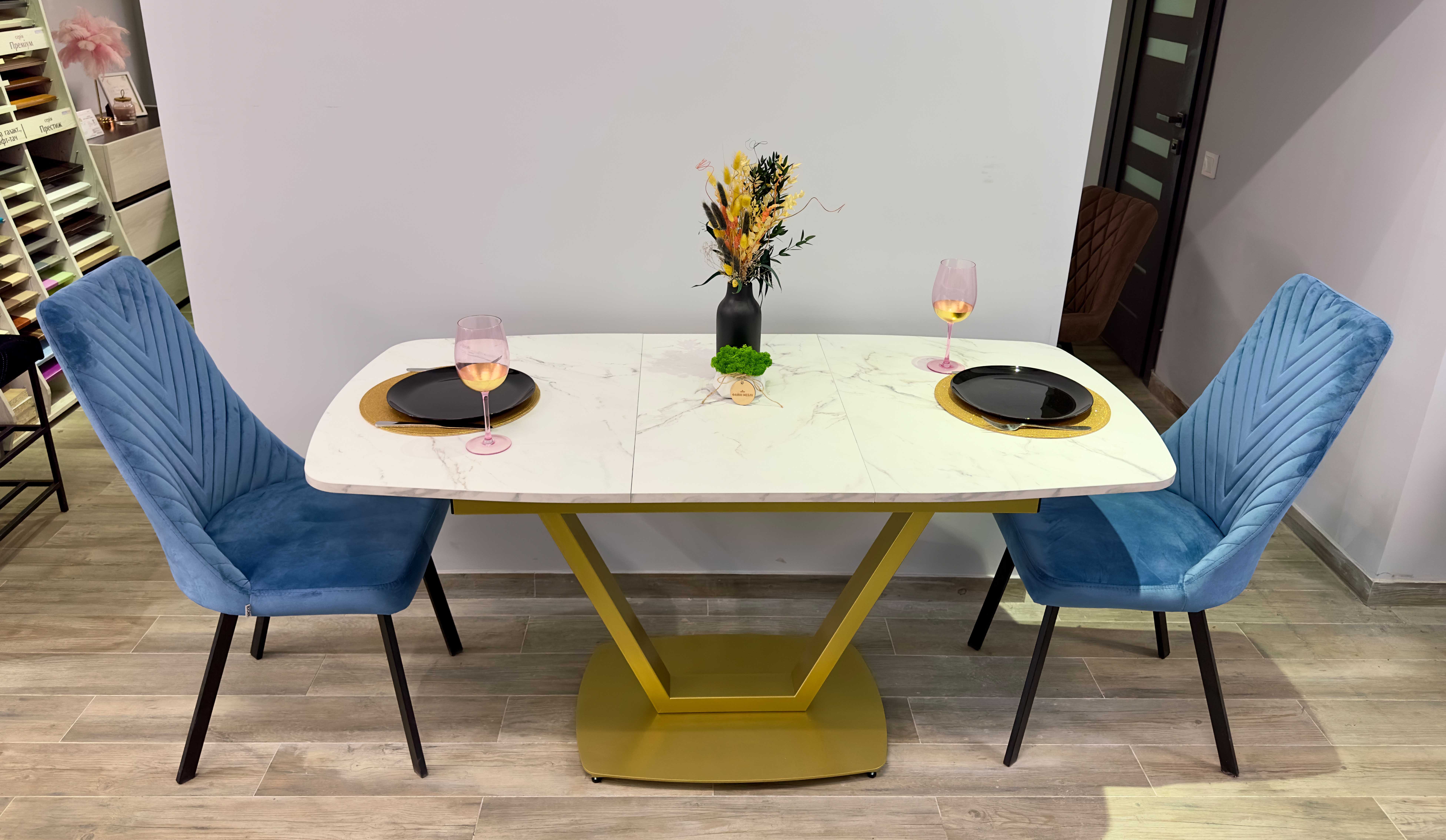 Стіл виготовлений українською фабрикою «MebliRoMax» — виробником сучасних меблів для дому. Підприємство спеціалізується на створенні практичних, стильних та довговічних моделей для кухні, їдальні й вітальні.