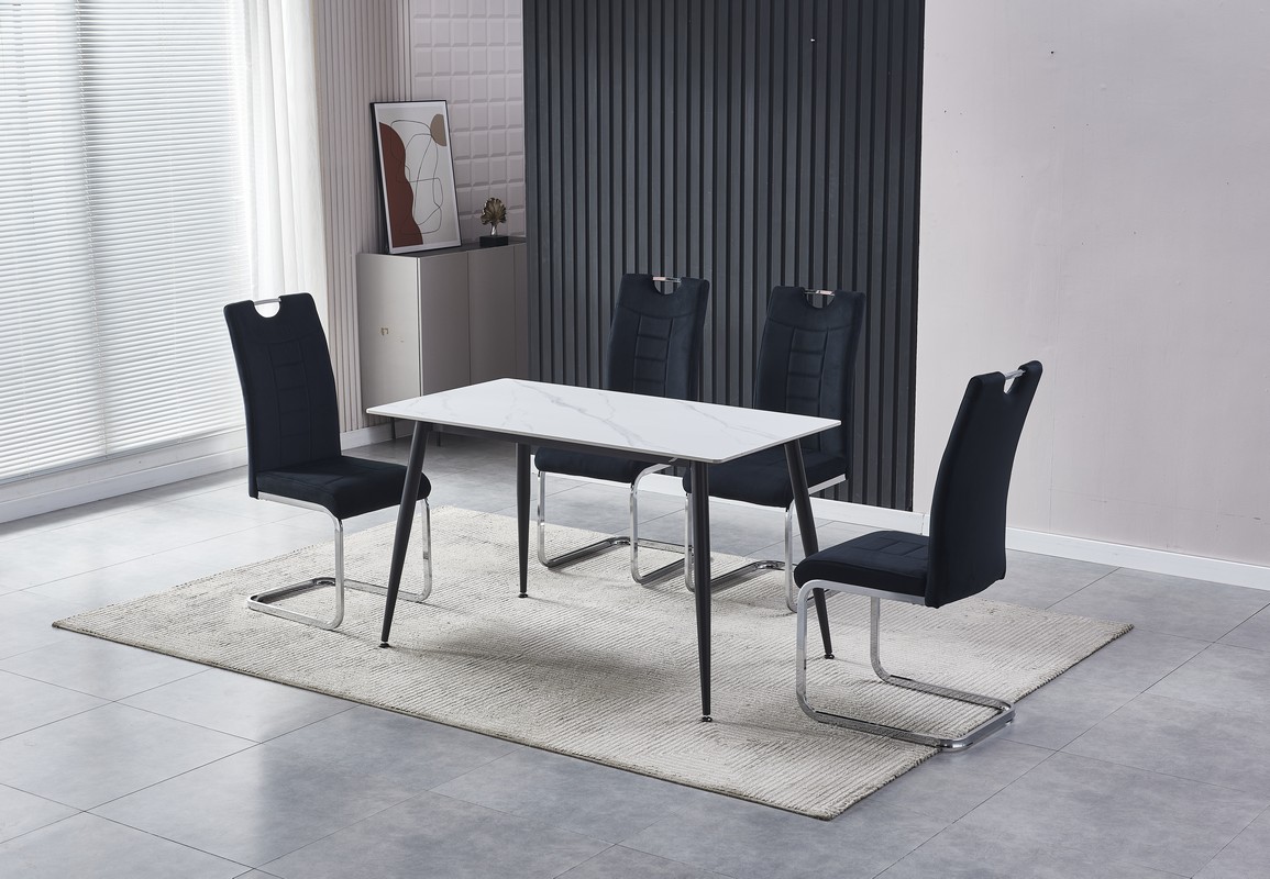 Стіл TM-100 білий мармур + чорний