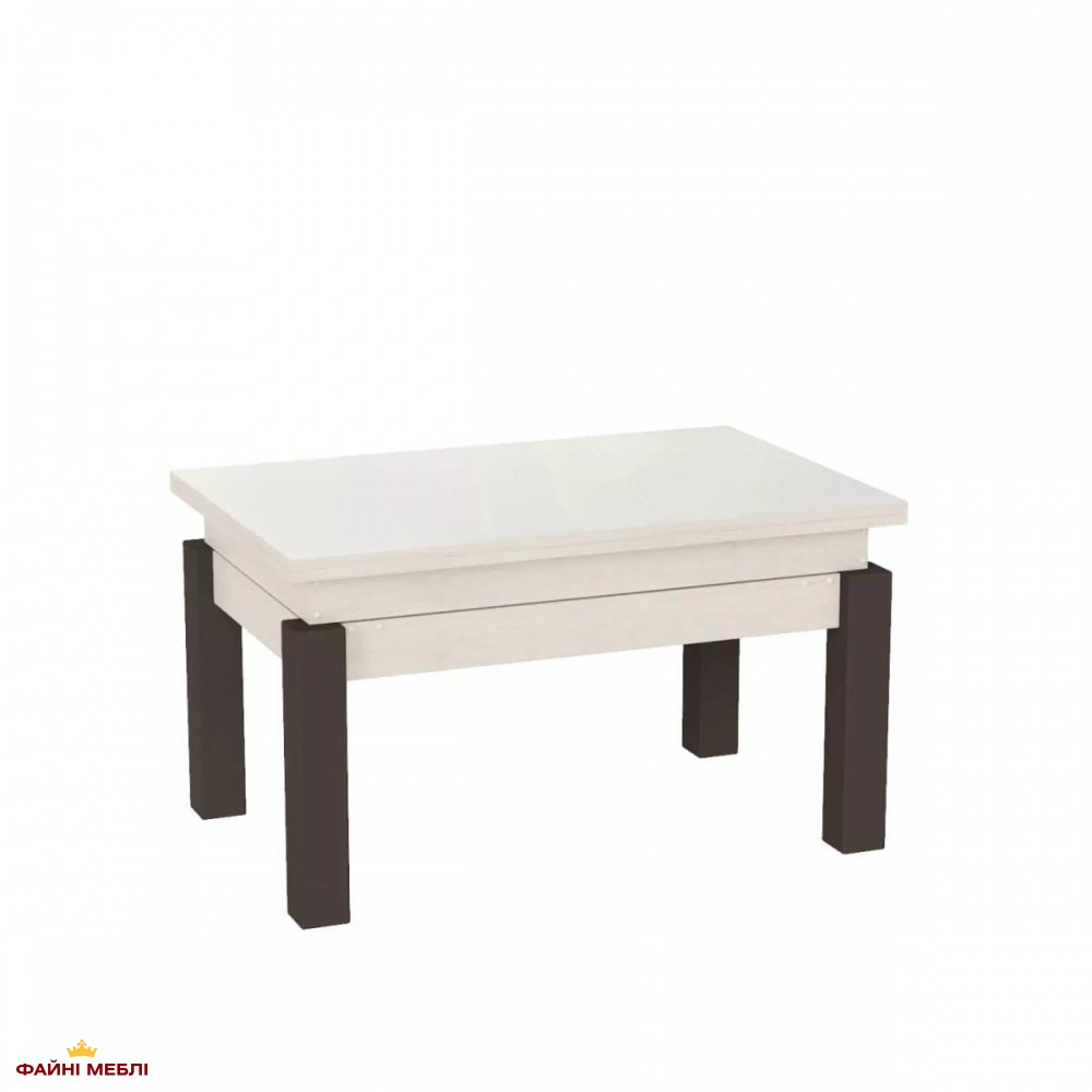 Стіл-трансформер B-Fly Glass Art In Head Гікорі рокфорд світлий/Венге ноги/Біле скло — легкість скла та сила трансформації