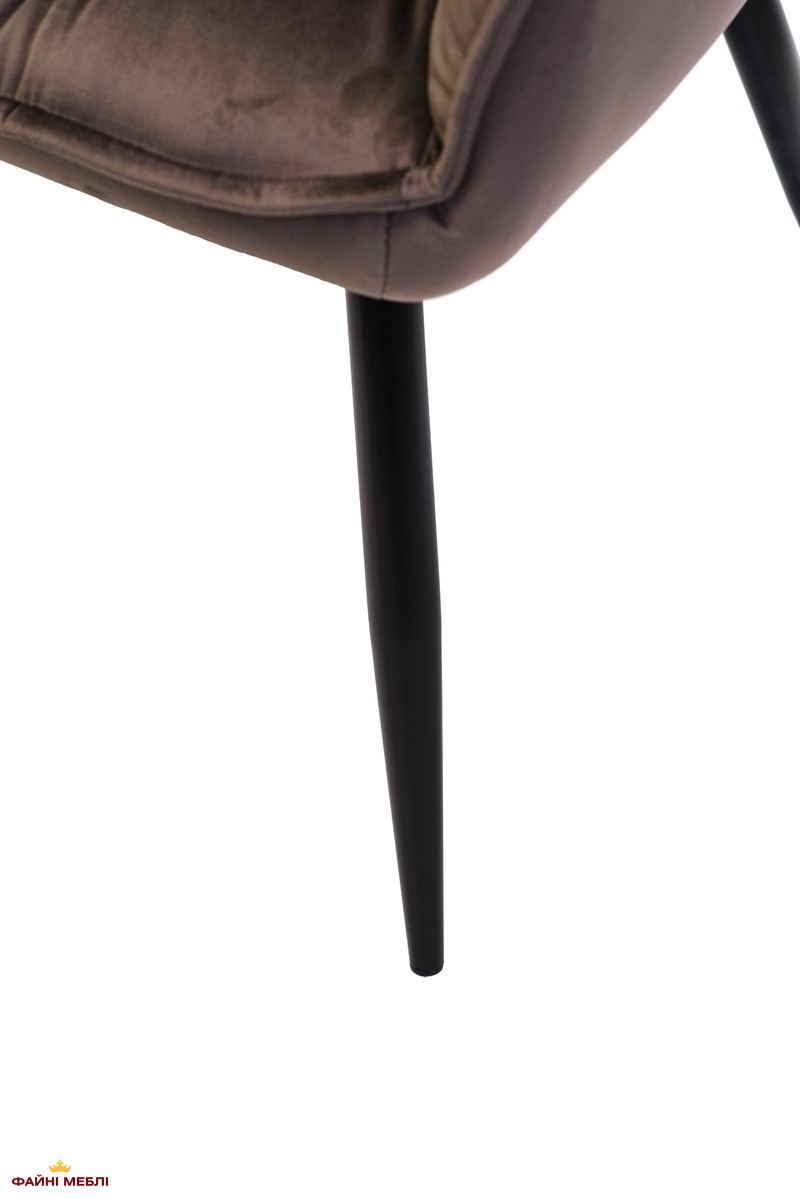 Каркас стільця виготовлений із міцного металу, покритого стійкою порошковою фарбою, що захищає від корозії та подряпин. Сидіння виконане з м’якого, приємного на дотик матеріалу — тканини або велюру високої щільності, що зберігає форму навіть після тривалого використання. Оббивка легко очищується, не вигоряє на сонці та має підвищену зносостійкість.