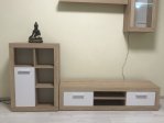 Стінка виготовлена з високоякісного ламінованого ДСП, яке відзначається стійкістю до подряпин, вологи та повсякденних навантажень. Натуральне поєднання кольору дуб сонома з акцентами німфеї альба створює стильний сучасний вигляд. Комплект складається з ТВ-тумби, закритих та відкритих відділень, дозволяючи вам максимально функціонально використовувати простір біля телевізора, залишаючи цю зону не перенавантаженою та естетичною.