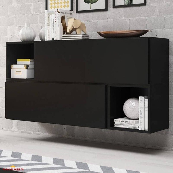 Стінка виготовлена з високоякісного ламінованого ДСП, яке відзначається стійкістю до подряпин, вологи та повсякденних навантажень. Комплект складається з закритих та відкритих відділень.