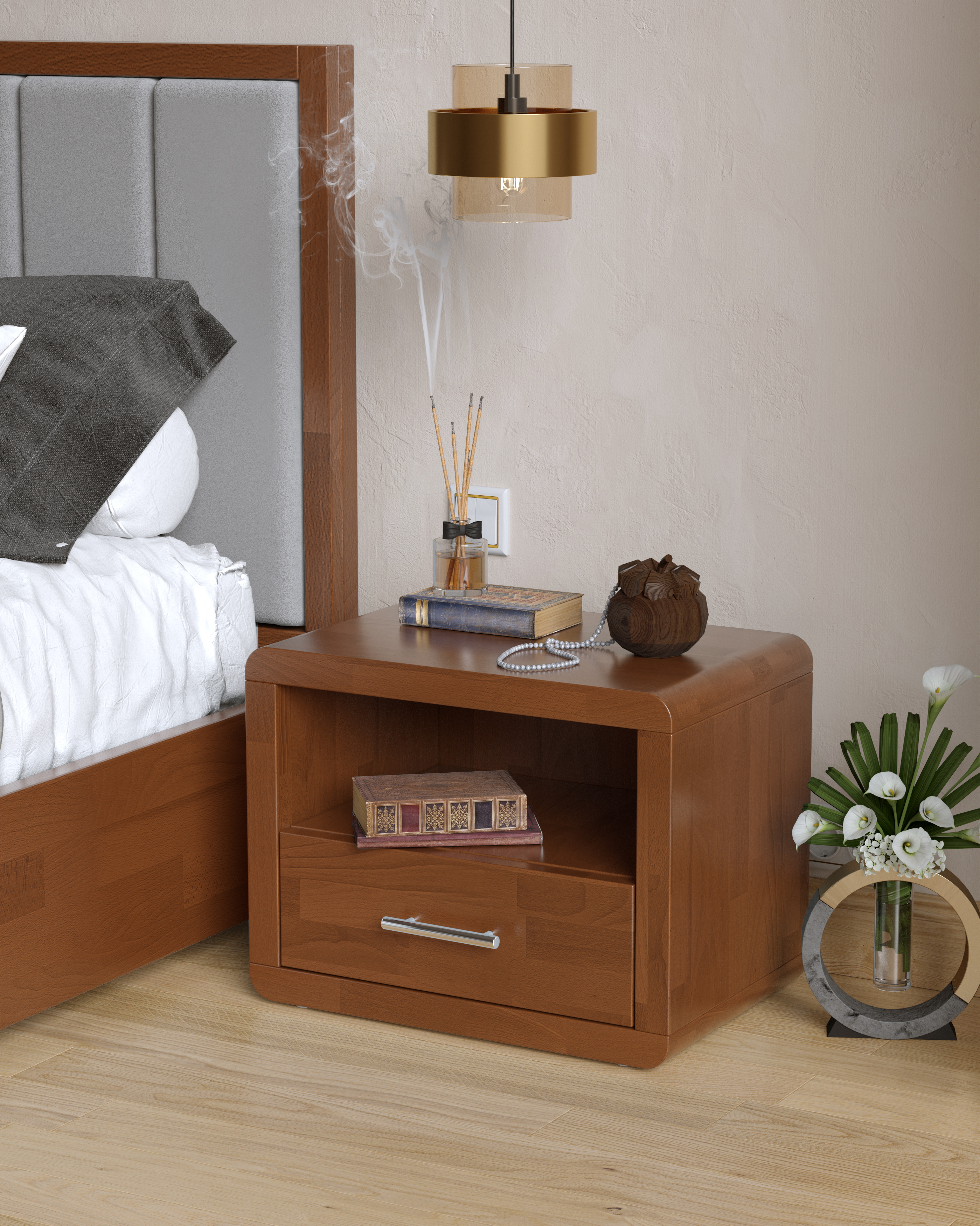 Приліжкова тумба Arbor Drev Gloria/Глорія — це стильне та функціональне доповнення для вашої спальні, яке поєднує красу натурального дерева та продуману ергономіку.