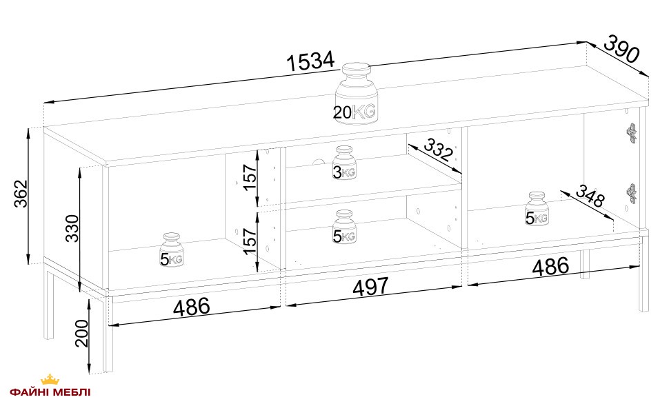 Тумба під ТВ Сенто / Sento RTV154 Чорний/дуб вотан Perfect Home Д153хГ39хВ56