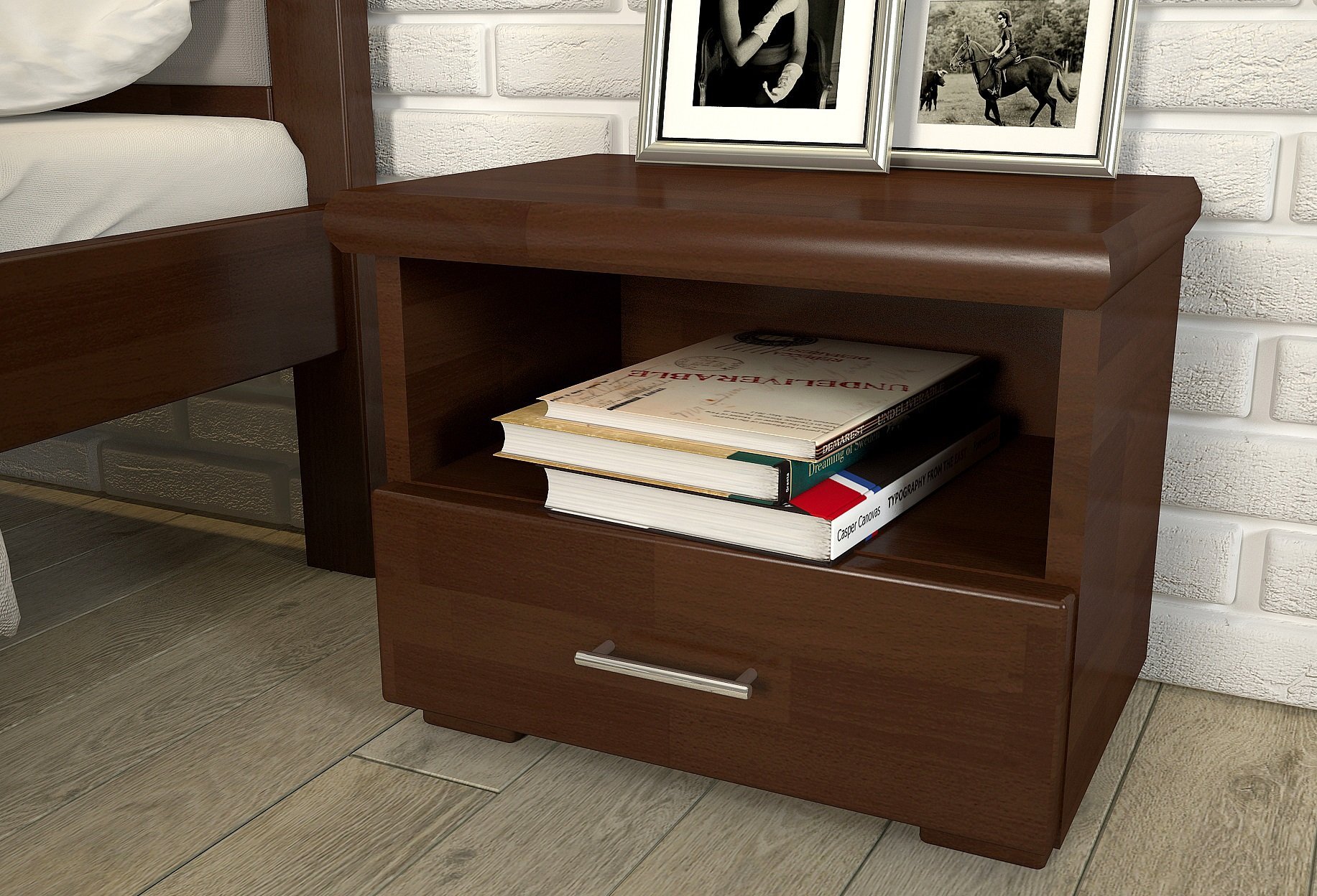 Тумбочка виготовляється з щита сосни або бука.