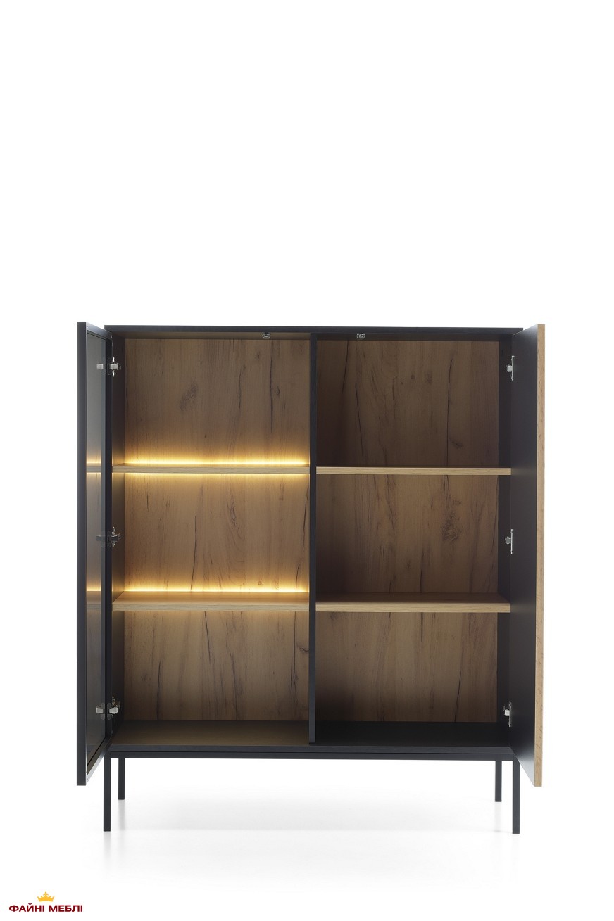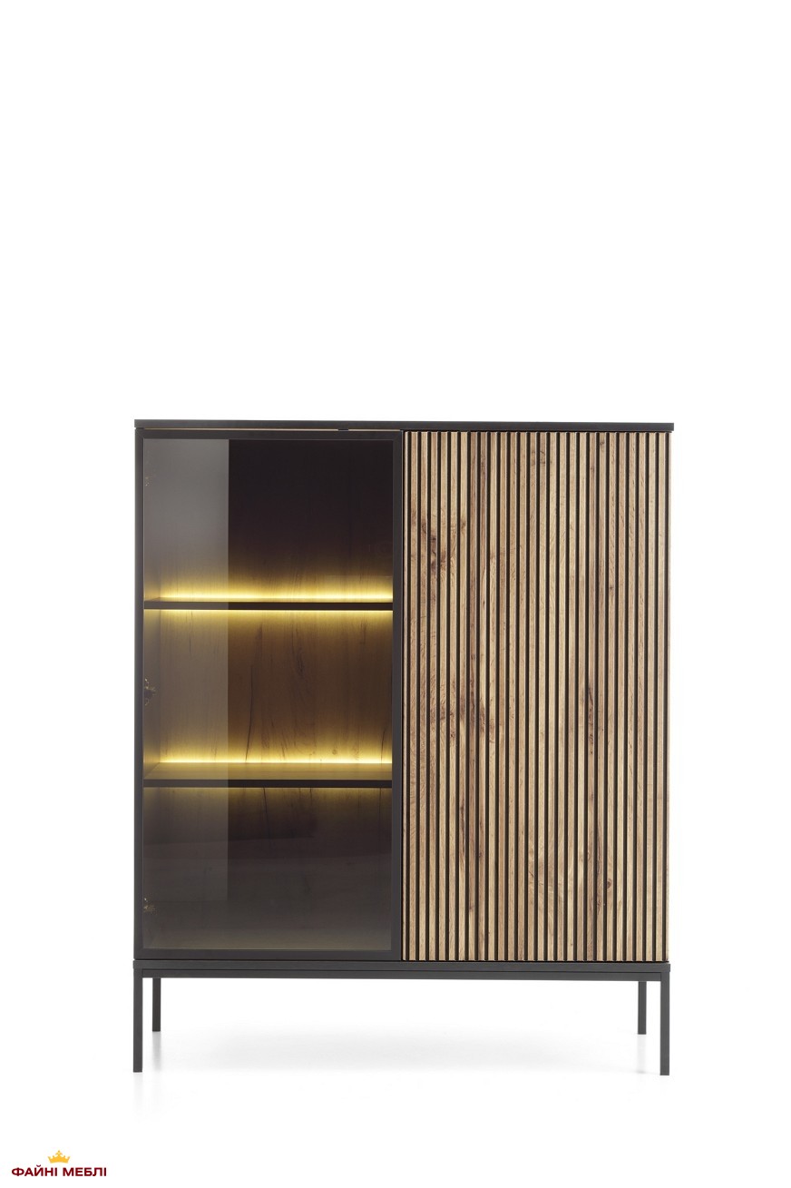 Вітрина низька Сенто / Sento WT104 з підсвіткою чорний/дуб вотан Perfect Home ширина 103 см.