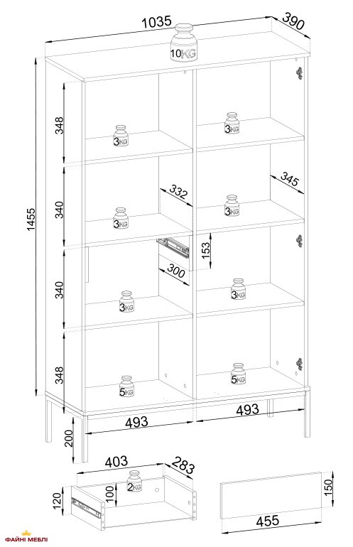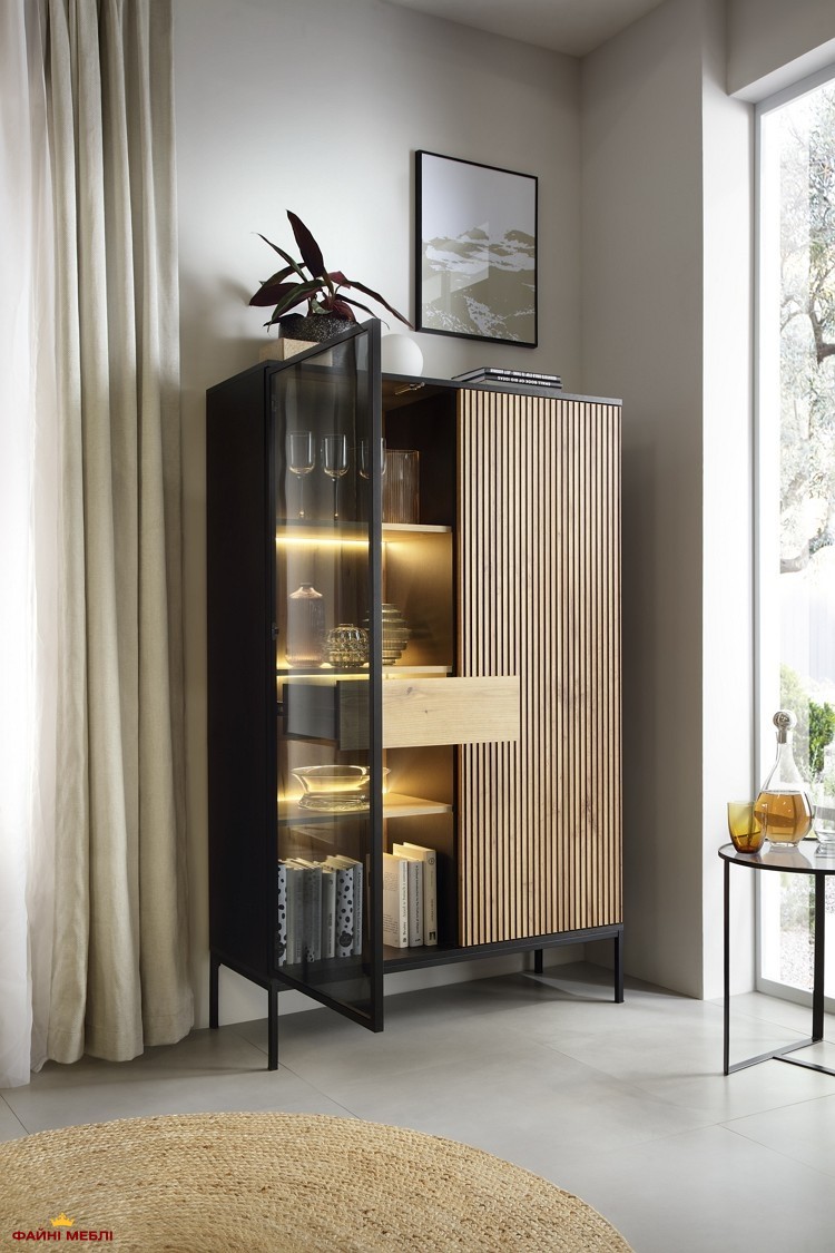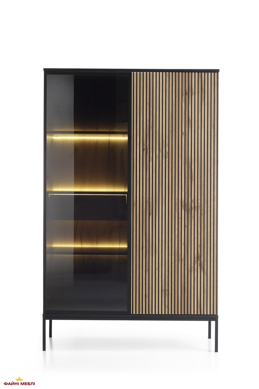 Вітрина висока Сенто / Sento WTSZ104 з підсвіткою Чорний/дуб вотан Perfect Home ширина 103 см.